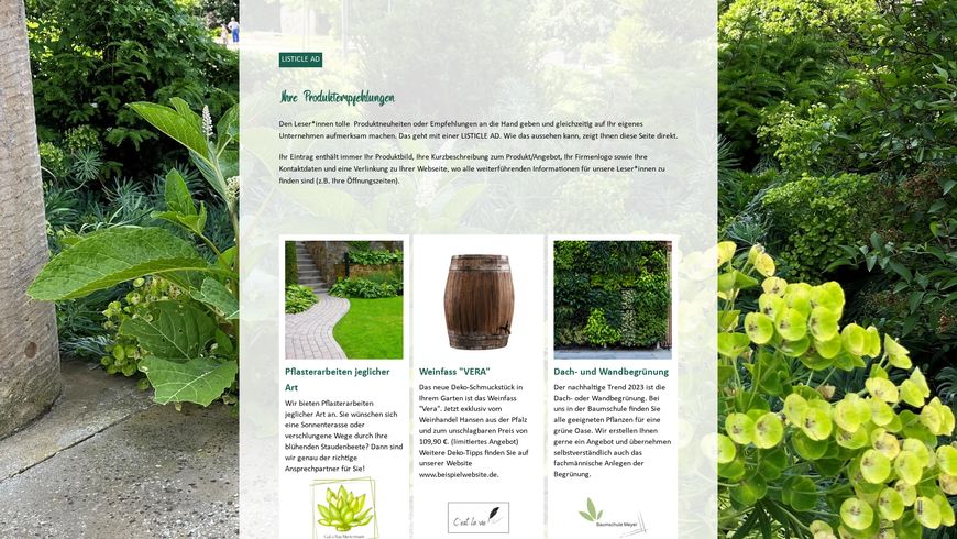 Ein Magazin, viele Möglichkeiten Aktuelle Gartentrends in verschiedenen Anzeigenformaten