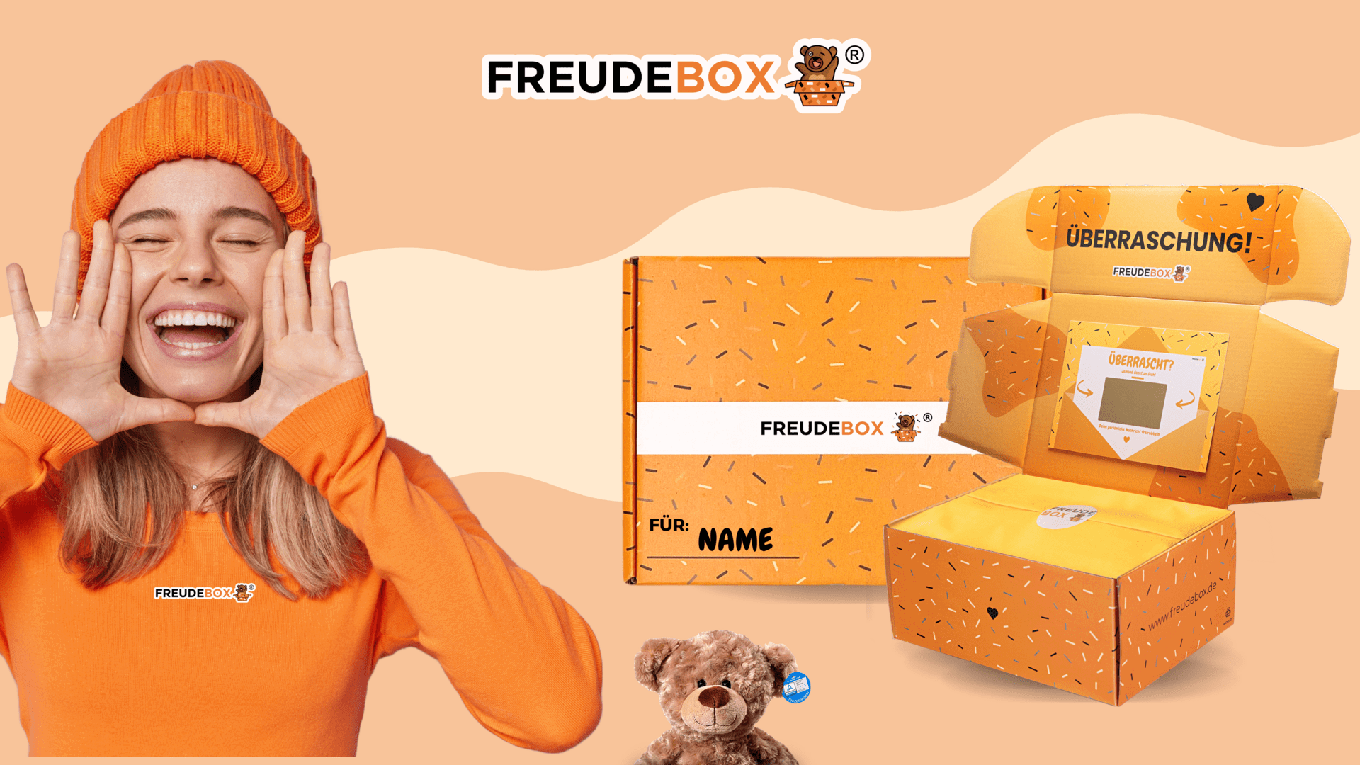 Statt kurzweilige Blumen zu verschenken, ist das Verschicken der FREUDEBOX das neue Geschenkerlebnis von heute. Die FREUDEBOX ist eine einzigartige Geschenklösung eines Startups aus Bremen, mit dem Ziel den Menschen im Alltag ein Lächeln ins Gesicht zu zaubern. Die personalisierte Geschenkbox kann online selbst zusammengestellt werden und besteht aus einem hochwertigen Kuscheltier, einer persönlichen Nachricht, die auf einer Grußkarte freigerubbelt wird und verschiedensten Erweiterungen, wie Süßigkeiten oder Schlüsselanhängern. Dabei wird jede Geschenkbox individuell & liebevoll verpackt und kann europaweit direkt verschickt werden.